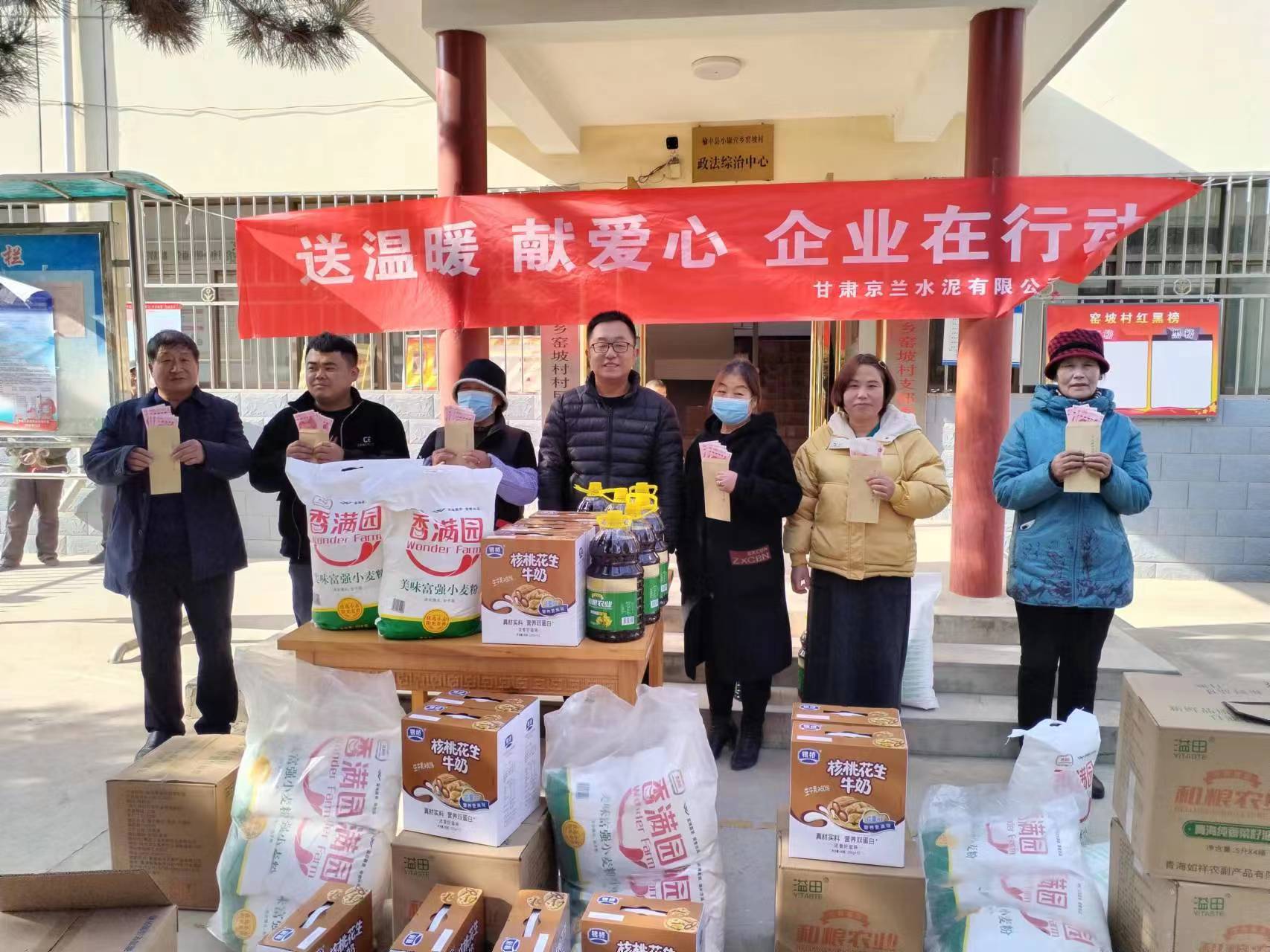 歲寒情更濃,牽掛暖人心。在春節(jié)來(lái)臨之際,甘肅京蘭水泥有限公司黨支部在企業(yè)所在地小康營(yíng)鄉(xiāng)、新?tīng)I(yíng)鎮(zhèn)、高崖鎮(zhèn)開(kāi)展了“送溫暖,獻(xiàn)愛(ài)心,企業(yè)在行動(dòng)”村企聯(lián)建活動(dòng),主要對(duì)涉企鄉(xiāng)鎮(zhèn)的老年人、困難家庭及罹患重病人員進(jìn)行了慰問(wèn)。此次活動(dòng)累計(jì)慰問(wèn)困難群眾122人(戶),發(fā)放面粉(10kg)122袋、食用油(5kg)122桶、純牛奶122箱、重病人員500元現(xiàn)金/人。